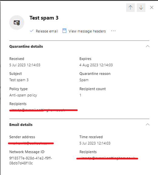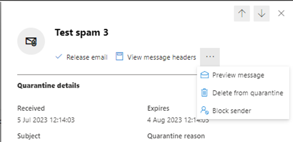 If you are unsure about any of the emails in your quarantine it is advised that you preview the message before deciding to release by selecting ‘Preview message’.
