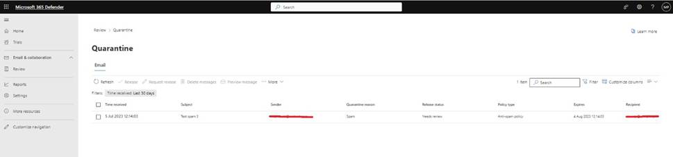 to: https://security.microsoft.com/quarantine.
